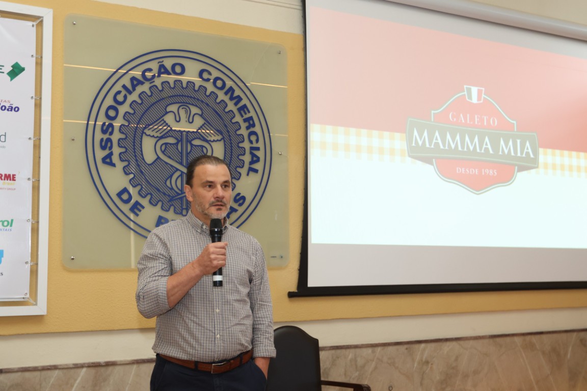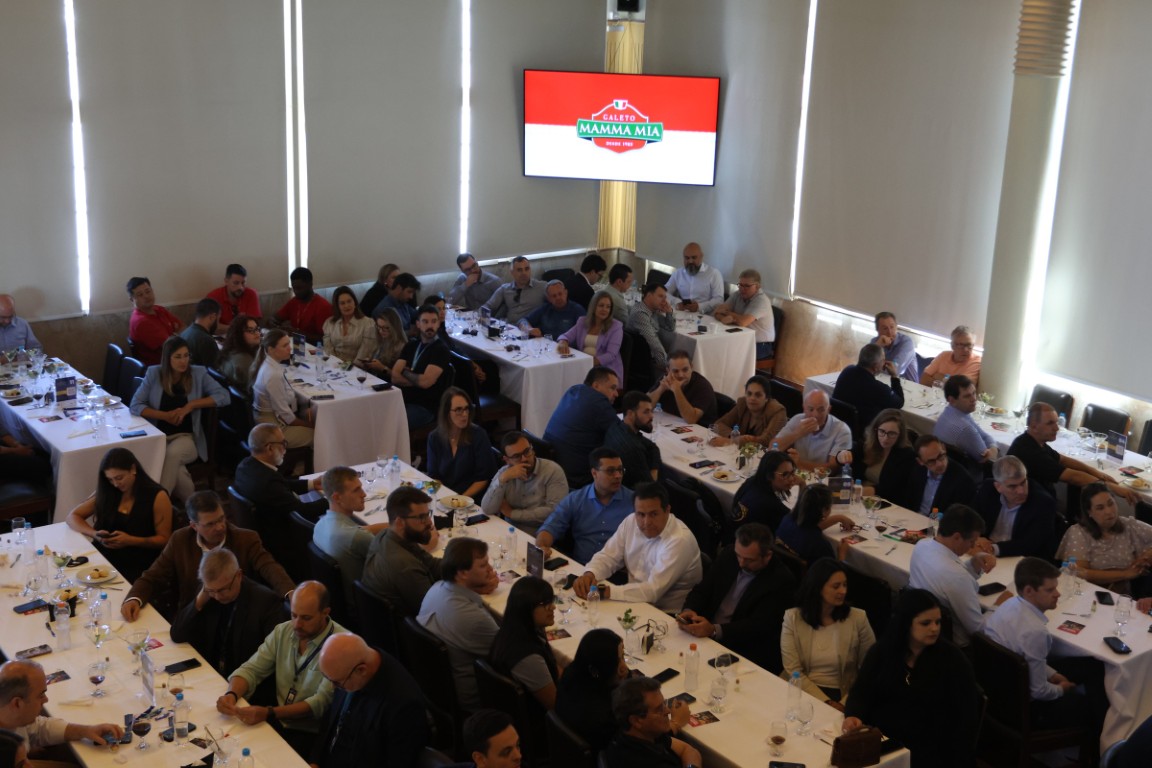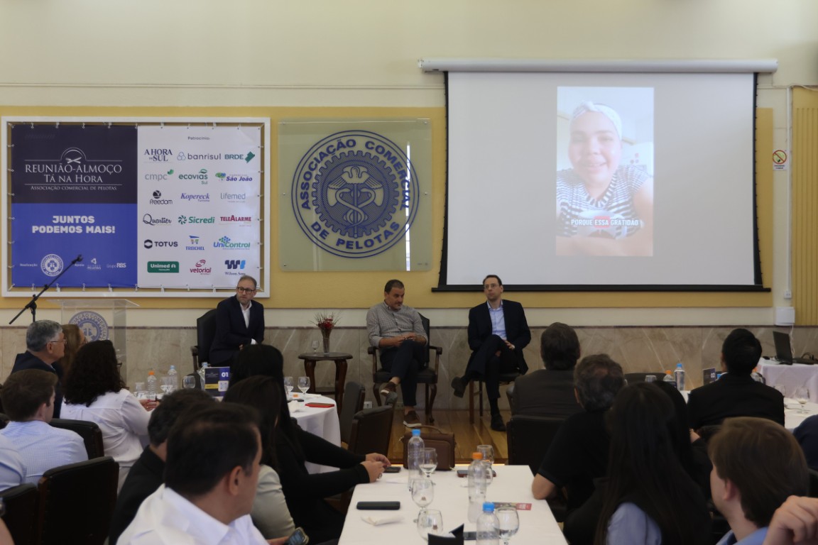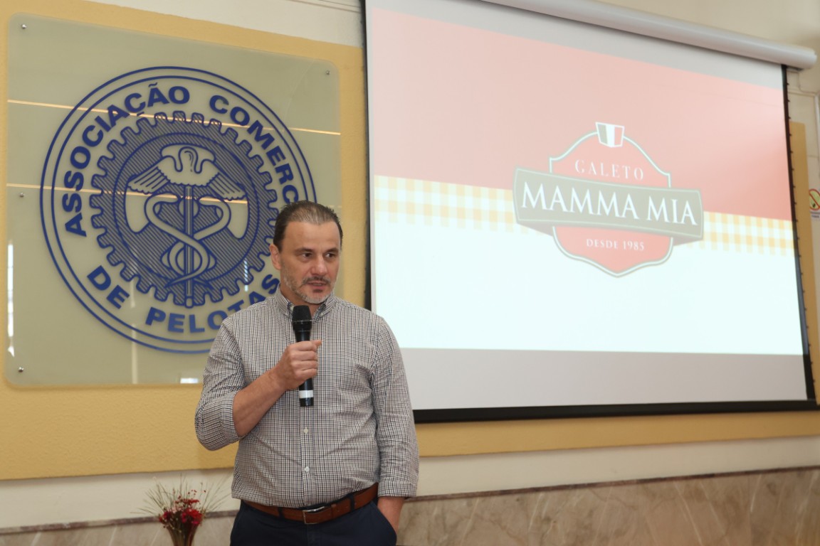 Na reunião-almoço Tá na Hora desta terça-feira (18), a ACP recebeu Julinho Cavichioni, fundador do Galeto Mamma Mia e líder do Grupo JPLP, e Marcelo Borba, CEO do grupo, para apresentar a trajetória de uma marca que nasceu da tradição italiana, transformou-se em referência gastronômica e hoje se prepara para abrir um novo capítulo em Pelotas. Com 40 anos de história, o Mamma Mia surgiu de forma tão simples quanto autêntica: Julinho começou a empreender aos 11 anos, se emancipou aos 16 e em 1985 inaugurou o primeiro restaurante em Gramado, inspirado nos almoços de família. Em 1986, abriu a primeira filial, passo que marcou a expansão da marca. “Vim aqui para compartilhar um pouco da minha história. A gastronomia é desafiadora, exige reinvenção todos os dias, mas empreender é sonhar. Não pode parar de sonhar nunca, mas sonhar com os pés no chão. É ter persistência, acreditar no que está fazendo”, destacou Julinho Cavichioni, durante uma fala que emocionou as mais de 120 pessoas presentes no evento, que também foram presenteadas com uma experiência gastronômica no primeiro mês de inauguração do Galeto na cidade.