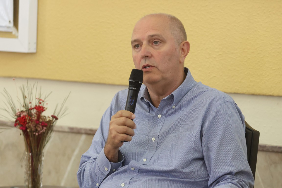 Marido de Cláudia e também sócio-proprietário da Fazenda Serra dos Tapes, Jerônimo Santos, trouxe suas contribuições à palestra, falando sobre o cenário nacional da comercialização. “O Brasil produz menos de 2% do azeite que consome e é o segundo maior importador do mundo”, afirmou. Para 2026, a expectativa é de uma safra histórica na Fazenda Serra dos Tapes. “As árvores estão carregadas. É um ano de comemoração, depois de períodos difíceis com condições climáticas desfavoráveis. Estamos batendo recordes de produção”, destacou Jerônimo. A estimativa é de cerca de 150 mil litros de azeite, com mais de 1,2 milhão de quilos de azeitonas processadas.